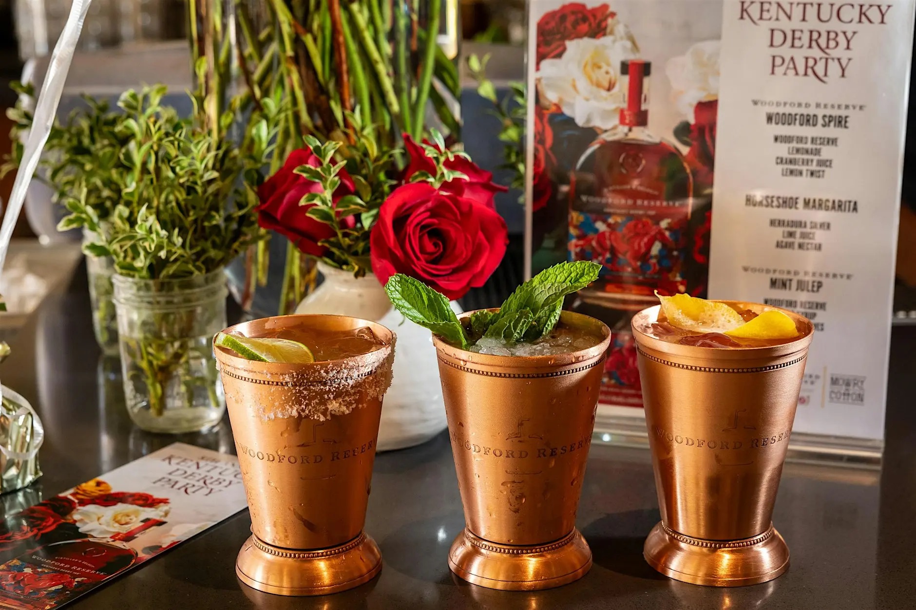 Ticket purchase includes two specialty cocktails served in a commemorative copper cup, along with a full Southern-inspired banquet featuring Chicken Sliders, Hot Brown Sandwiches, Hanger Steak, and Shrimp and Grits by Chef Danielle Realmonte of Mowry & Cotton. Guests will take in the action via multiple viewing screens, a live DJ, and a lively atmosphere throughout the event. Come dressed in your Derby best!