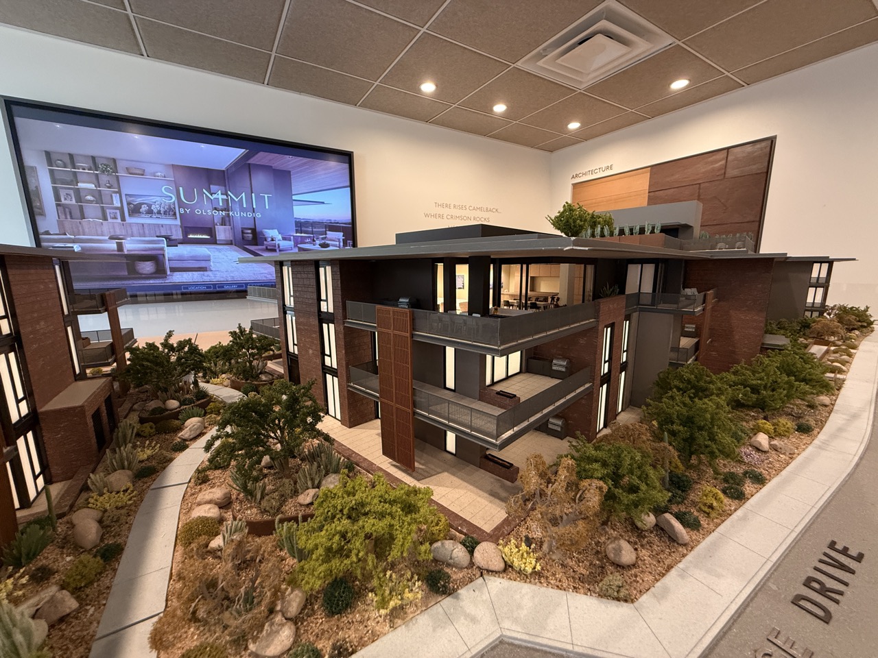 The space features a detailed architectural model of the Summit Residences, offering perspective on scale, placement, and the relationship to Camelback Mountain. Material selections incorporated into each residence are presented throughout the gallery, allowing visitors to experience the full design palette from our bulthaup kitchen systems, Waterworks fixtures, stone and metal materials, and other interior and exterior finishes.